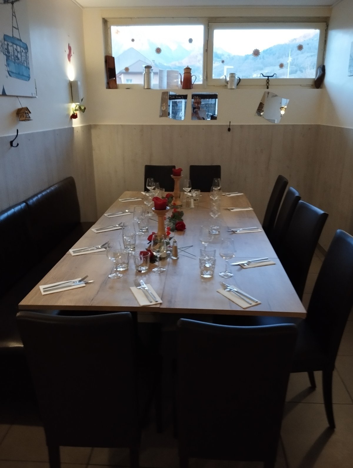 La salle d'une capacité de 35 personnes, vous accueille pour un déjeuner, un diner en tête à tête ou pour un anniversaire, un mariage. N'hésitez pas à pousser la porte ! À bientôt